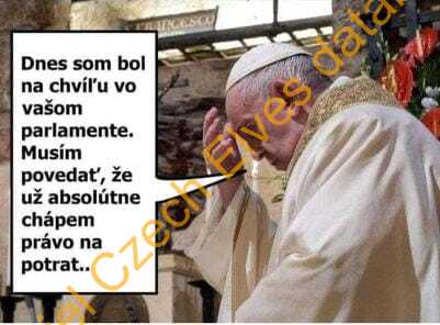Převzato zřejmě z nějakého slovenského serveru; na obrázku je kající se papež František, který po návštěvě parlamentu již chápe právo na potrat