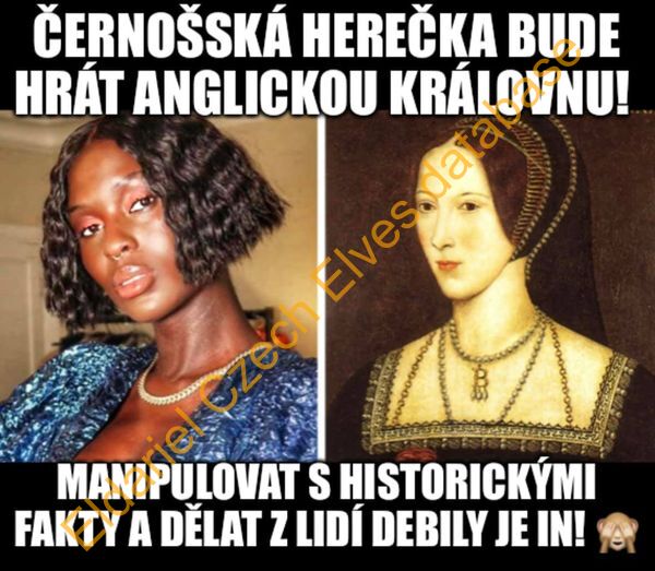 15 "vtipných" obrázků, mezi nimi jeden proti Romům a jeden kritizující, že anglickou královnu bude v televizním seriálu hrát černoška.