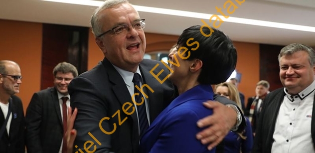 Popisek: Miroslav Kalousek v objetí s Markétou Pekarovou Adamovou