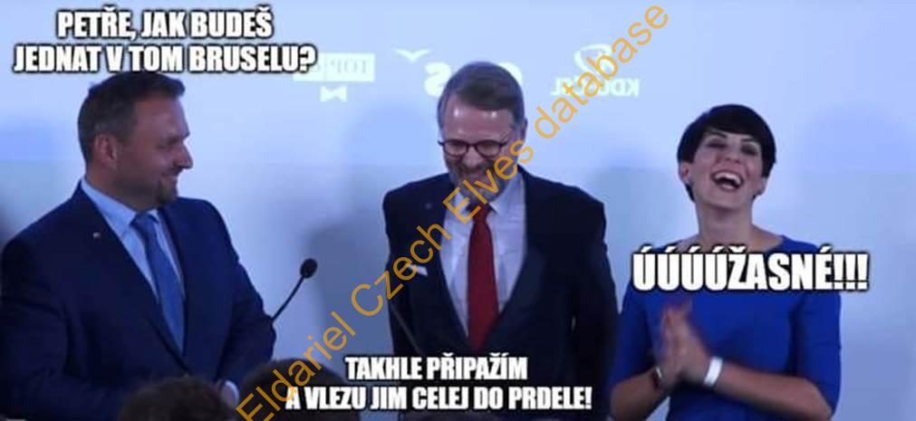 Vtip o tom jak koalice spolu poleze Bruselu do prdele. Podobné s ID 12878.
