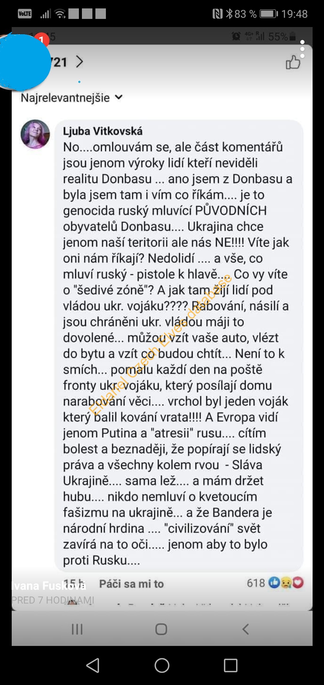 Příloha obsahuje cca 60 fotografií zmasakrovaných těl - údajně ukrajinskou armádou na Donbase a Luhansku. Podporován narativ, že 8 let páchali Ukrajinci genocidu a Evropa tomu jen přihlížela. V další příloze FB komentář Ljuby Vítkovské o tom, že na Donbasu byla 8 let páchána genocida na rusky mluvících původních obyvatelích, ale Evropa vidí jenom Putina a ruskou agresi.