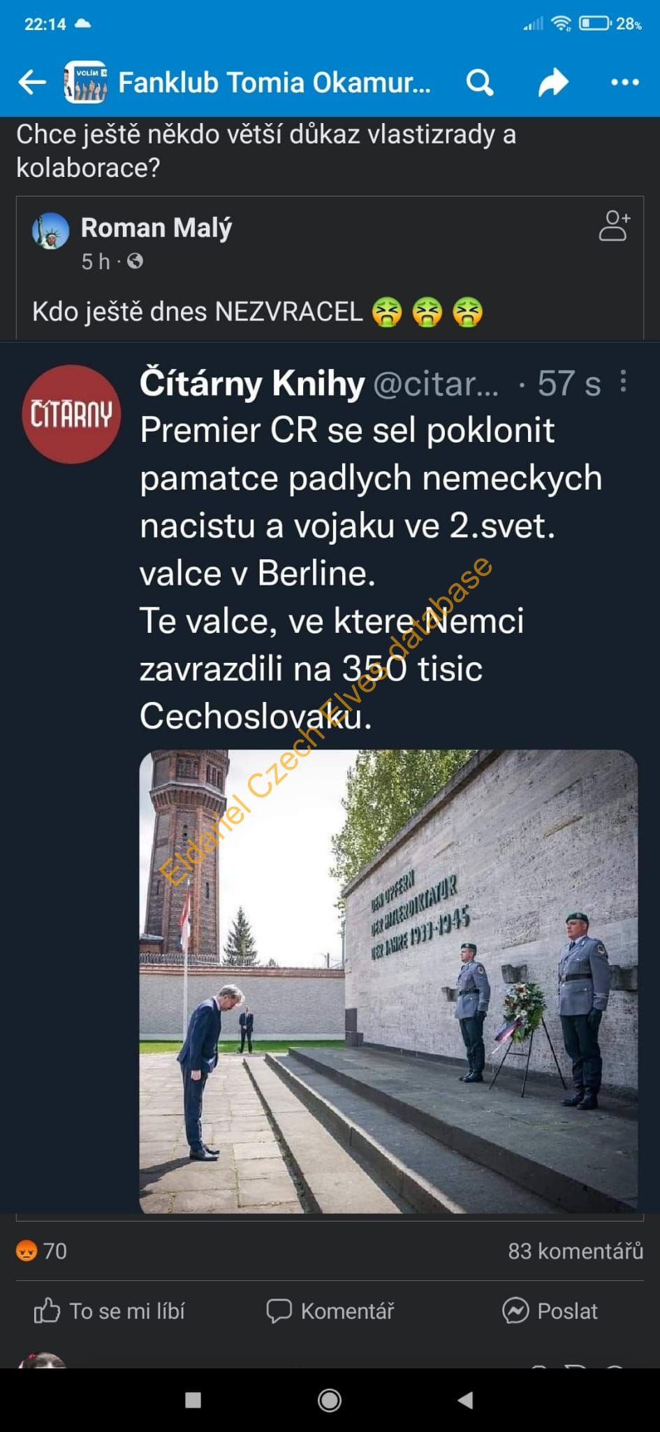 | 17876 | Předseda vlády Fiala se klaní u pomníku padlých vojáků Wehrmachtu a SS | 2022-05-15 16:11:01 |
