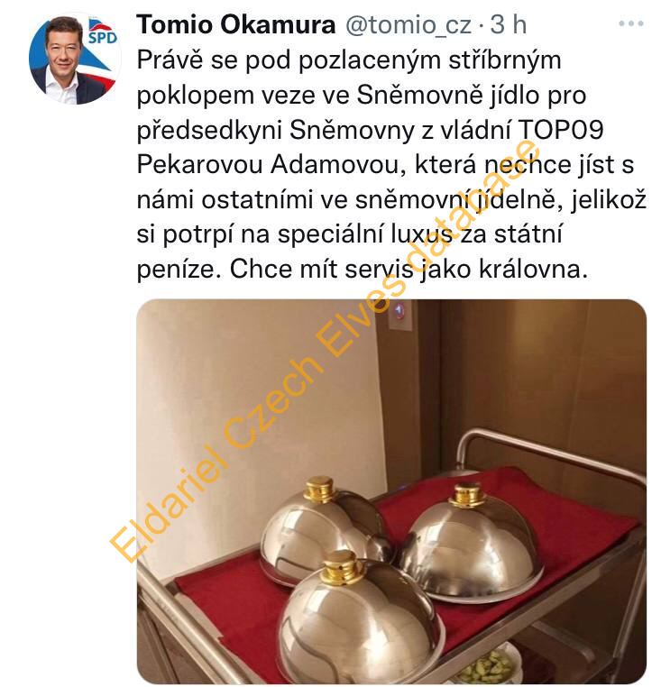 Sobotní nákup v Penny. Všímám si babičky, která si prohlíží kostku másla za 56,90. Poté ho vrací zpět do regálu. V košíku měla dvě housky, krabici mléka, v sáčku 3 cibule, 2 mrkve. A pomalu šla k pokladně...Po zaplacení mého nákupu jsem došla tuto paní, pozdravila ji a dala jí dvě másla do tašky."Nezlobte se, já Vám je nemohu zaplatit" reagovala stará paní. Řekla jsem jí, že je to dárek ode mě a platit je v žádném případě nechci. A rozloučila se s ní... Vím jen, že zůstala stát na chodníku a dívala se za mnou... VY DUŠEVNÍ MRZÁCI, CO SI ŘÍKÁTE "VLÁDA", UŽ JSTE VYTRÁVILI PO OBĚDĚ NA ZÁMKU ŠTIŘÍN? ZŘEJMĚ JSTE MUSELI HODNĚ POVOLIT OPASKY, ŽE? ZA 250.000 ZMÍNÍM JEN JEDNU, MYŠLENKOU VELMI OBSÁHLOU VĚTU ZE ŠVEJKA:"KDY PRASKNETE, ČUŇATA" ??? Alica Prudelová