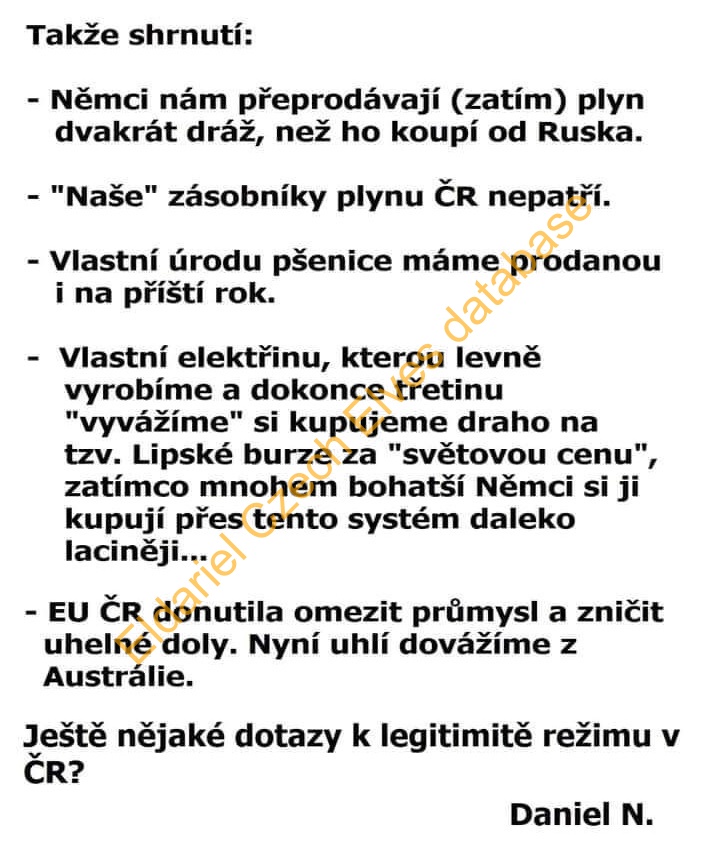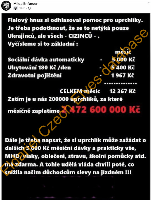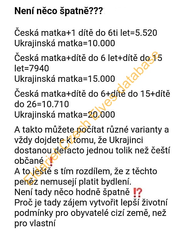 První příloha je plakát o letních táborech pro ukrajinské děti zdarma. V neškodném letáku nechybí zmínka o tom, že akci financuje MŠMT. Druhá příloha je screenshot příspěvku osoby, která si říká Milda Enforcer, na sociální síti. Příspěvek je na téma sociální dávky pro cizince, nejen pro Ukrajince. Nezapomíná se samozřejmě na to vyjmenovat, co všechno vláda cizincům financuje, zatímco na vlastní důchodce úplně kašle. Třetí příspěvek má název "Není něco špatně" a porovnává sociální dávky, které dostane česká matka, s dávkami pro ukrajinskou matku. Podle srovnání dostávají Ukrajinci dvakrát víc než Češi. Poslední příloha je na téma elektřina, plyn a vláda.