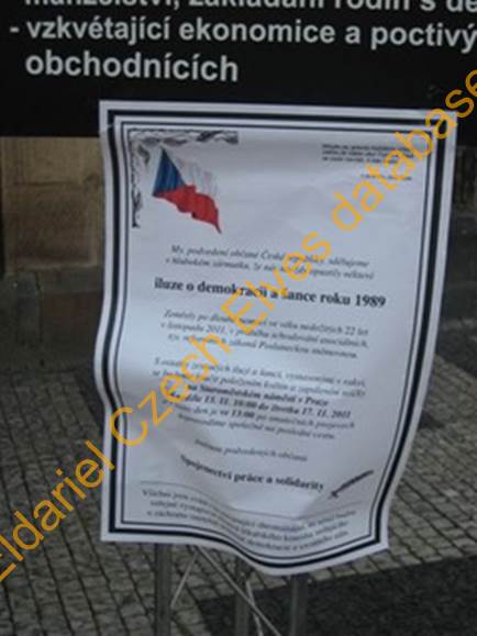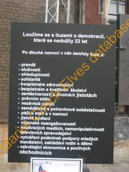 Akce na Staroměstském náměstí v Praze, kde byla v listopadu 2021 vystavena urna, Česká vlajka a parte, podle kterého nás ve věku nedožitých 22 let opustily iluze o demokracii a šance roku 1989. Snaha evokovat spojení s demonstrací strany PRO na Staroměstském náměstí 11.9.2022.