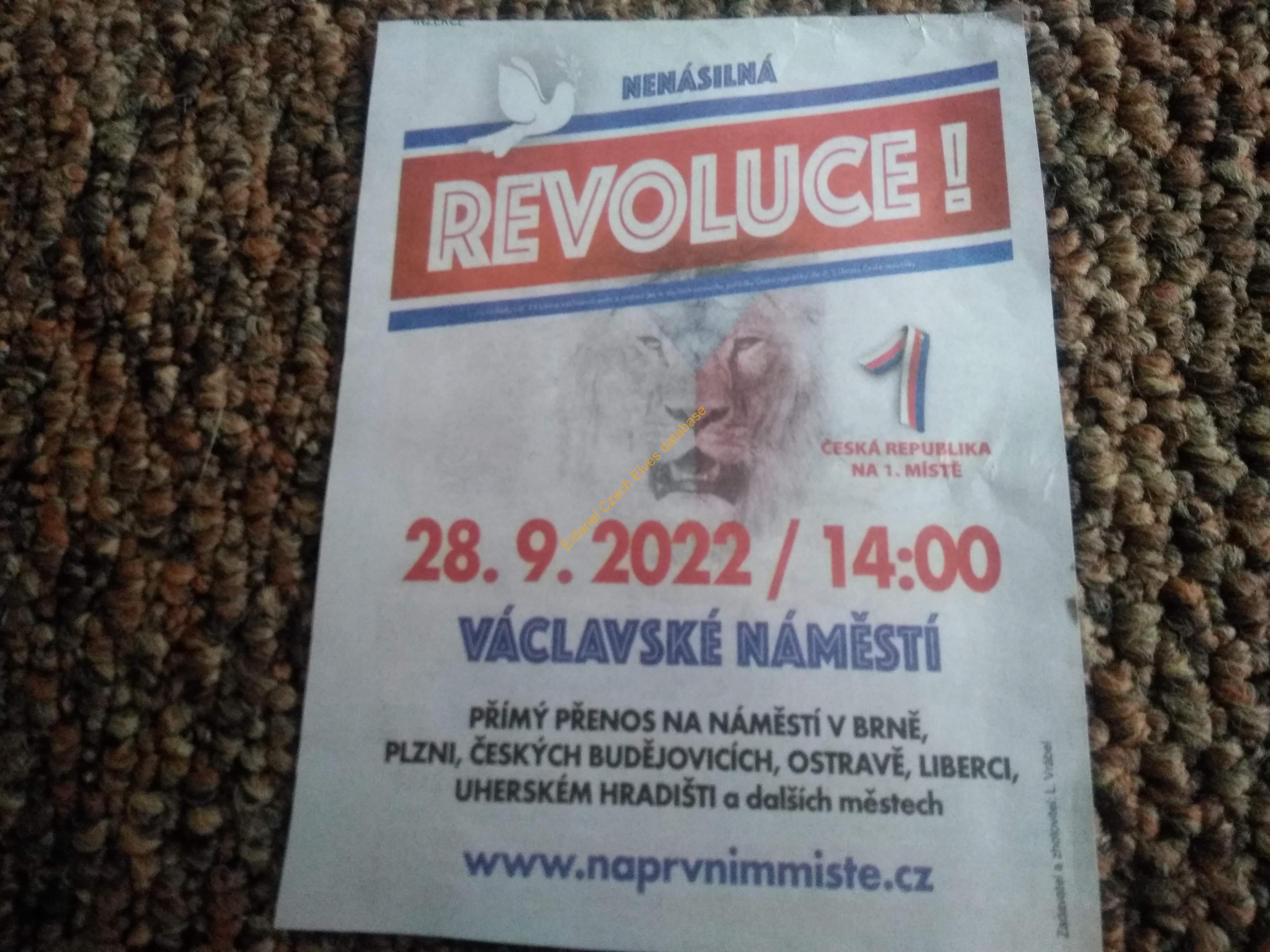 Foto pozvánky na demonstraci - "Nenásilná revoluce" 28. 9. 2022 14 h Praha Václavské náměstí + nejen přímý přenos do dalších měst - "Česká republika na 1. místě!" www.naprvnimmiste.cz.