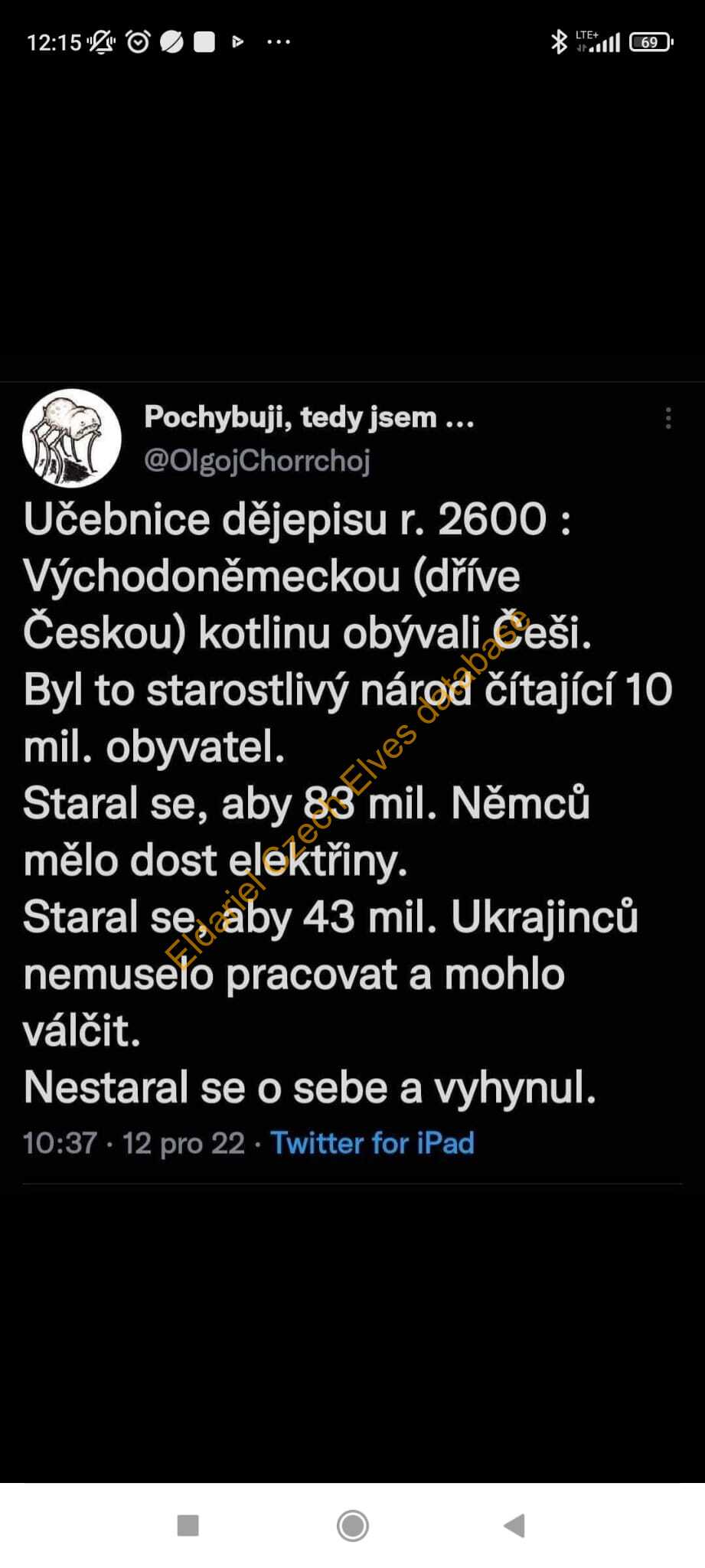 Český národ vyhyne, protože se stará o to, aby Němci měli dost elektřiny a Ukrajinci nemuseli pracovat a mohli válčit.