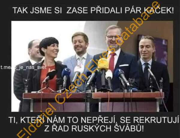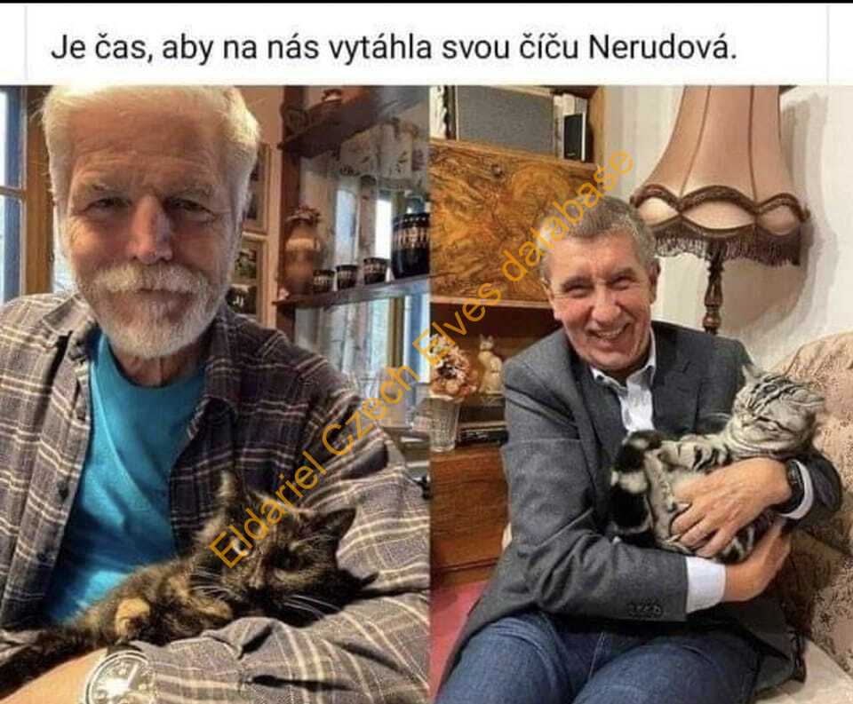 V příloze tři obrázkové memy - 1) Rádoby vtípek s kočkami na prezidentské kandidáty 2) Vládní politici si přidali a ti, kterým se to nelíbí, jsou ruští švábi 3) Reakce na Víta Rakušana ukazujícího v kalendáři na datum soudu s Andrejem Babišem. V těle mailu vulgární vzkaz Rakušanovi, že by se měl Babišovi omluvit.