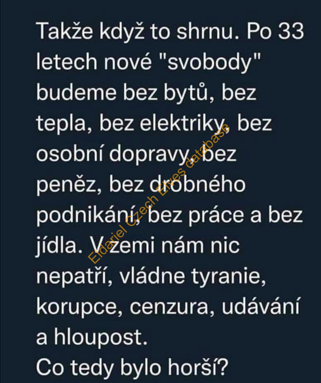 Obrázkové textové memy odrážející nespokojenost s polistopadovým vývojem a současným směřováním vlády.