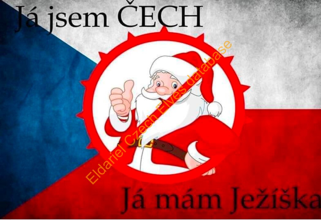 1. text "Já jsem Čech, já mám Ježíška" na české vlajce, s přeškrtnutým obrázkem Santa Clause