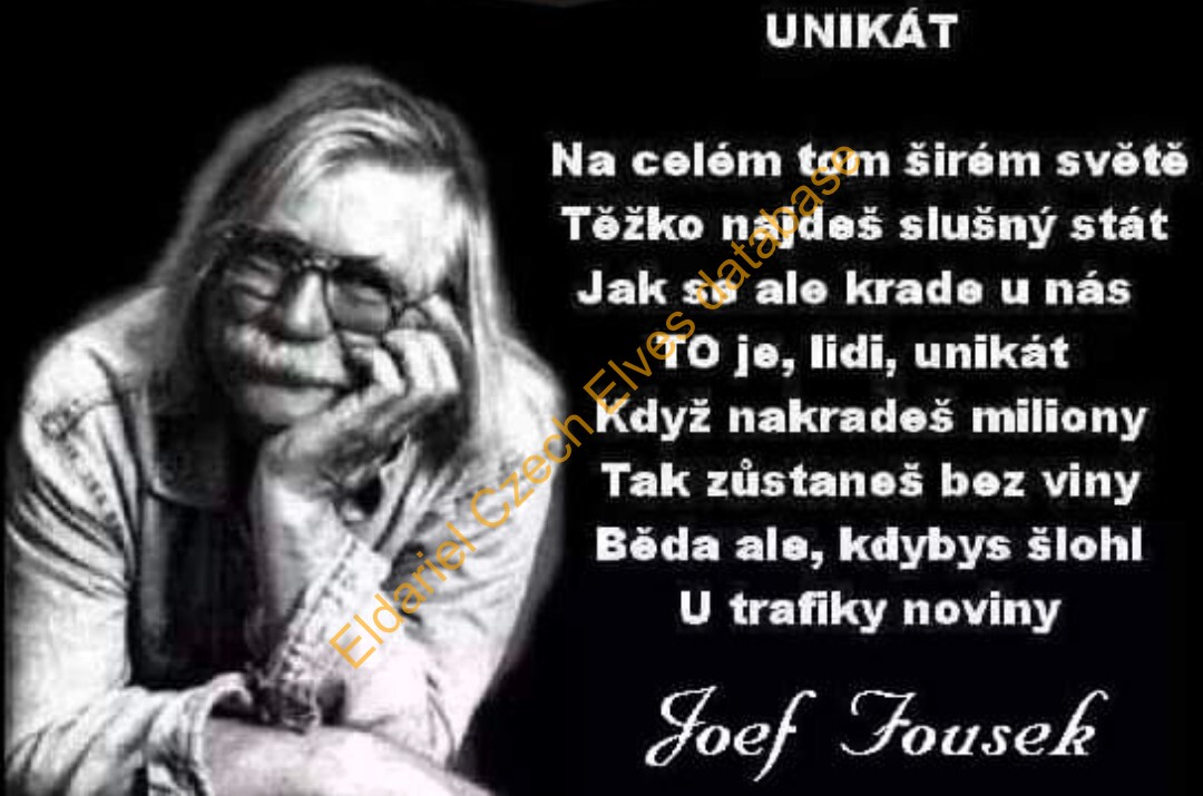 8. "UNIKÁT. Na celém tom širém světě - Těžko najdeš slušný stát - Jak se ale krade u nás - TO je, lidi, unikát - Když nakradeš miliony - Tak zůstaneš bez viny - Běda ale kdybys šlohl - U trafiky noviny. Joef Fousek"