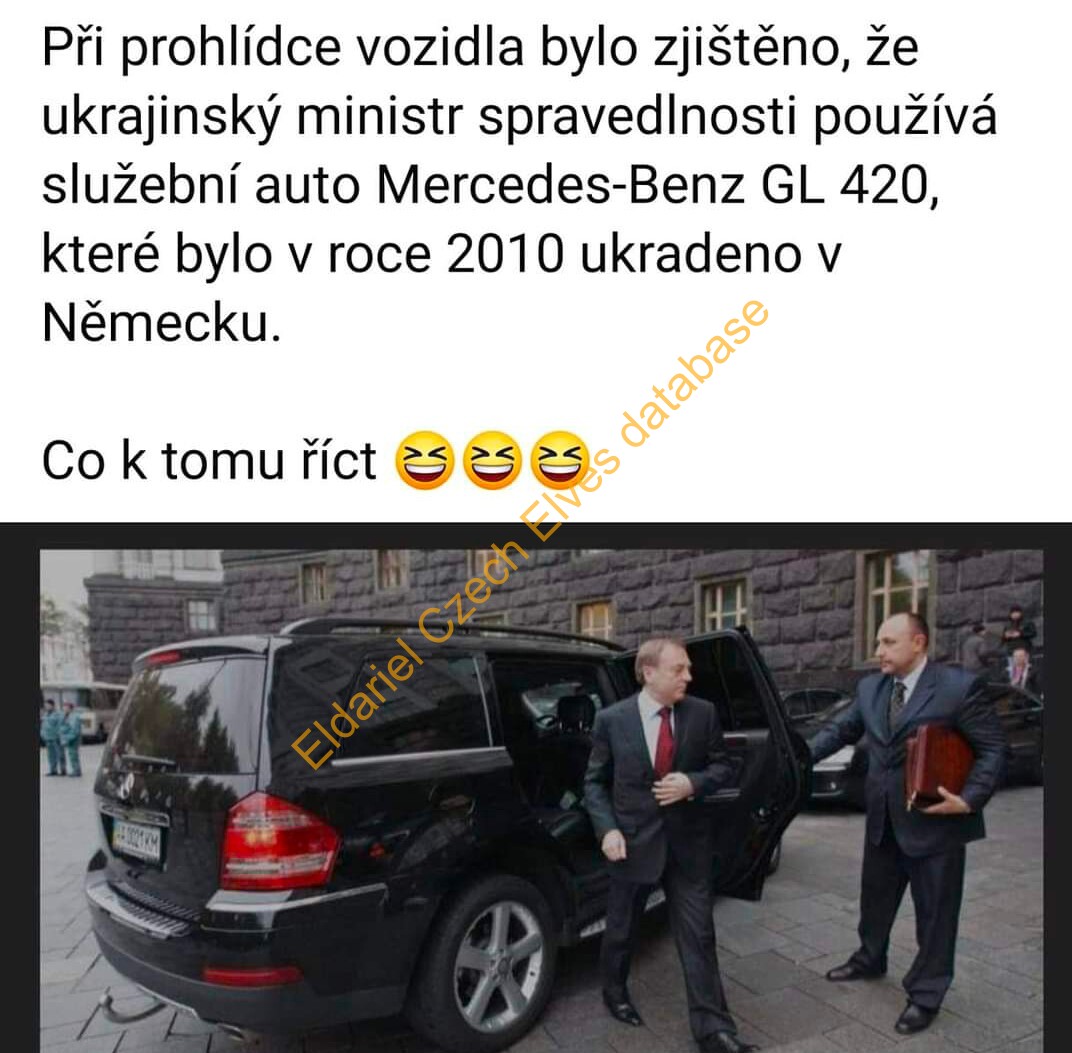 3. "Při prohlídce vozidla bylo zjištěno, že ukrajinský ministr spravedlnosti používá služební auto Mercedez-Benz GL 420, které bylo v roce 2010 ukradeno v Německu. Co k tomu říct."