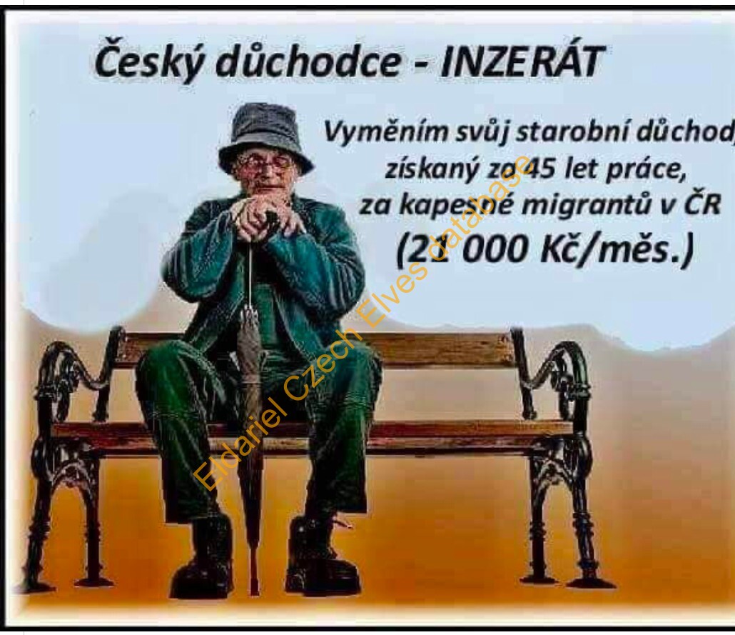 5. "Český důchodce - INZERÁT. Vyměním svůj starobní důchod získaný za 45 let práce, za kapesné migrantů v ČR (21 000 Kč/měs.)"