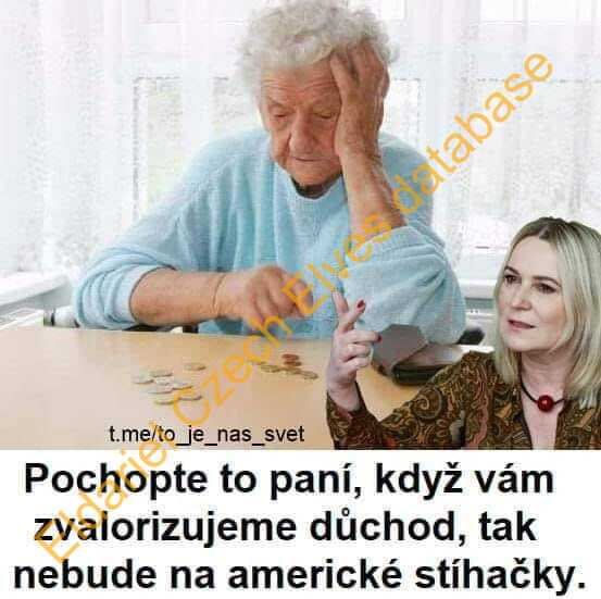3 meme obrázky o vládě, která bere důchodcům, aby bylo na platy politiků a americké stíhačky