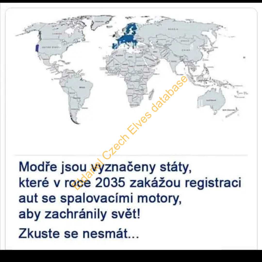 V příloze mapka, zvýrazněny státy, které chtějí zakázat registraci vozidel se spalovacími motory. Je jich hrstka a jsou k smíchu.
