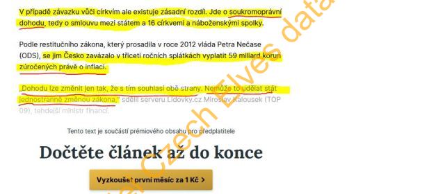 Myslel jsem si, že tu penzijní velkozlodějnu Fialova Obludária jsem popsal opravdu pečlivě a dostatečně. Stačil však jeden mailík od jedné z kosířek – konkrétně paní Jiřiny, abych slezl zase rychle z hučky dolů a zjistil, že jsem cosi mimořádně důležitého, pokud jde o valorizaci , přehlédl, ba dokonce odfláknul! Pokud si nyní myslíte, že vás čeká další dlouhý traktát, plný čísel, grafů a slov jste na omylu. Tentokráte budu stručný. Vážně! Oč běží? V prvním velkém článku k téhle velkozlodějně jest konstatováno, že se jedná o největší loupež v polistopadových dějinách! Hned po Klausově privatizaci a církevních restitucích! """""""" "" "" "" """""""" stát vyplatí církvím miliardy jako náhradu za nevydaný majetek s valorizací A právě to je to oč tu běží!!!! O církevní restituce a JEJICH NEDOTČENOU INFLAČNÍ valorizaci!!!! Docvaklo mi to okamžitě, jakmile se ozvala paní Jiřina! Díky za tuto zpětnou reflexi! Takže jsem do vyhledavače zadal prostinké církevní restituce + valorizace a… a bum ho! Rána do hlavy! Jako první nabídka se mi zjevilo tohle - placený článek z Lidovek. Nevidím důvod, proč bych měl Lidovkám cokoliv platit, ale ten viditelný perex mluví sám za sebe!!!! To je , co????!!!! Takže církevní restituce, což byla zlodějna sama o sobě se budou valorizovat a samozřejmě, že o PLNOU INFLACI. Ale důchody těch, co ty restituce a její valorizaci platí ze svých daní , například z DPH, spotřební daně nebo daně z nemovitostí nebo srážkové daně ze zbytků naspořených peněz v bance? Tak to prrrrrrrrrrrrr!!!! To prrrrrrrrrrrrrrrrrrr! Ti nárok nemají. Protože nejde o soukromoprávní dohodu! Že to důchodci měli pojištěno něčím daleko pevnějším, tedy za normálních okolností, než je soukromoprávní dohoda, tedy zákonem?! Nezajímá! Tohle Fialu a jeho asociály nezajímá! Hlavně, že církve dostanou plnou valorizaci o inflaci, takže nebudou škodovat! Dobře si to pamatujte! Takhle Obludárium zachází se svými občany! neobyčejně mne těší, že mi vláda sděluje, že nejsem občanem druhé, nýbrž třetí kategorie! V té první jsou národní hosté, tedy Ukrajinci! Na ty být prostě musí za každou cenu! V té druhé církev a její hodnostáři! Na ty být také musí! Inflace neinflace! A v té třetí jsme my , všichni ostatní, kteří jim jejich benefity platíme. V podstatě – co Obludárium ukradne nám, dá těm dvěma privilegovaným skupinám nad námi. Co zbude, půjde Zlenskému a na zbrojení! Takhle jednoduché to je! Věřím, že dál už není nutné nic dodávat!!!! Nebude vůbec špatně, když i tohle bude šířeno v co největším rozsahu dále!