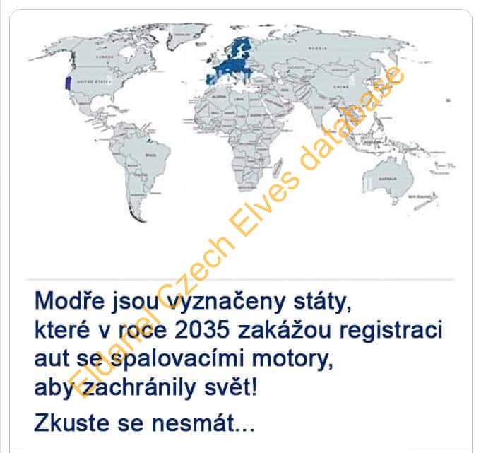 mapa světa s vyznačením států, které zakážou spalovací motory - Evropská unie a pak skoro nikdo
