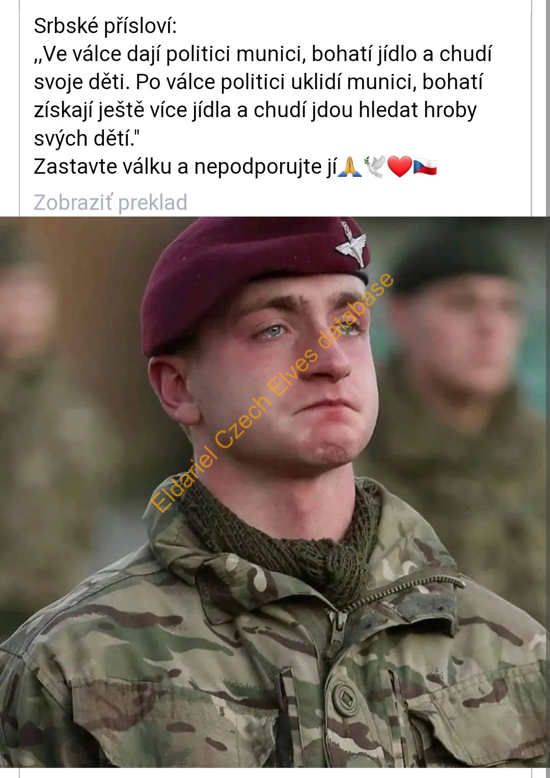 srbské přísloví ,,Ve válce dají politici munici, bohatí jídlo a chudí svoje děti. Po válce politici uklidí munici, bohatí získají ještě více jídla a chudí jdou hledat hroby svých dětí."