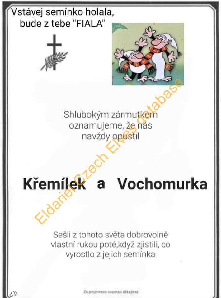 Obrázek Křemílka a Vochomůrky zesměšňující Petra Fialu