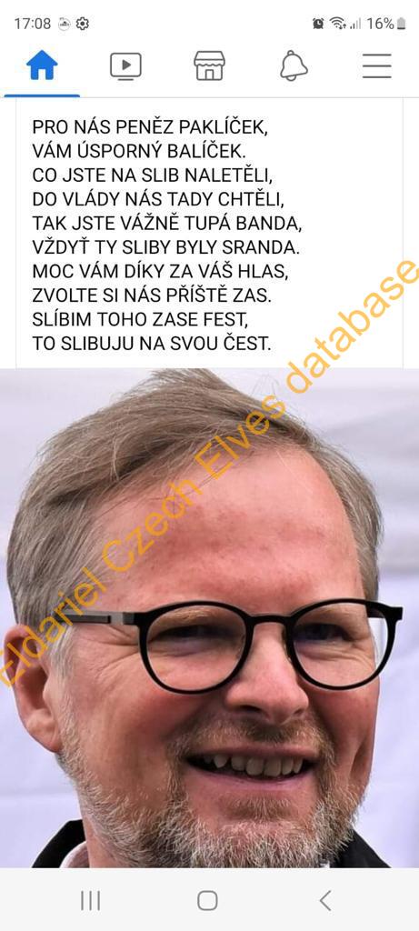 PRO NÁS PENĚZ PAKLÍČEK, VÁM ÚSPORNÝ BALÍČEK. CO JSTE NA SLIB NALETĚLI, DO VLÁDY NÁS TADY CHTĚLI, TAK JSTE VÁŽNĚ TUPÁ BANDA, VŽDYŤ TY SLIBY BYLY SRANDA. MOC VÁM DÍKY ZA VÁŠ HLAS, ZVOLTE SI NÁS PŘÍŠTĚ ZAS. SLÍBIM TOHO ZASE FEST,