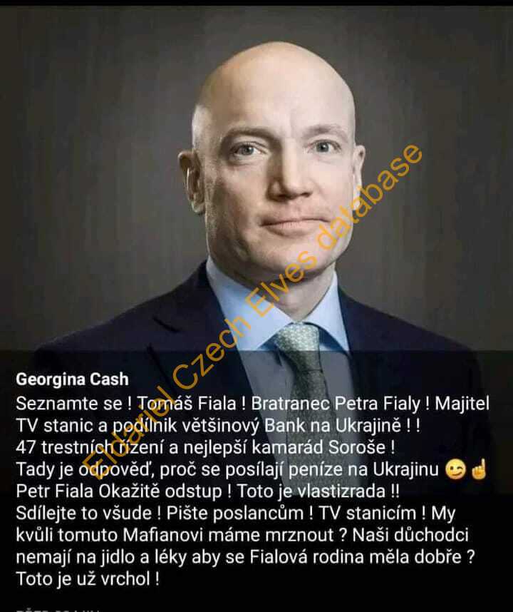 Seznamte se ! Tomáš Fiala ! Bratranec Petra Fialy ! Majitel TV stanic a podílnik většinový Bank na Ukrajině ! ! 47 trestních řízení a nejlepší kamarád Soroše ! Tady je odpověď, proč se posílají peníze na Ukrajinu 0 e.4 Petr Fiala Okažitě odstup ! Toto je vlastizrada !! Sdílejte to všude ! Pište poslancům ! TV stanicím ! My kvůli tomuto Mafianovi máme mrznout ? Naši důchodci nemají na jidlo a léky aby se Fialová rodina měla dobře ? Toto je už vrchol !