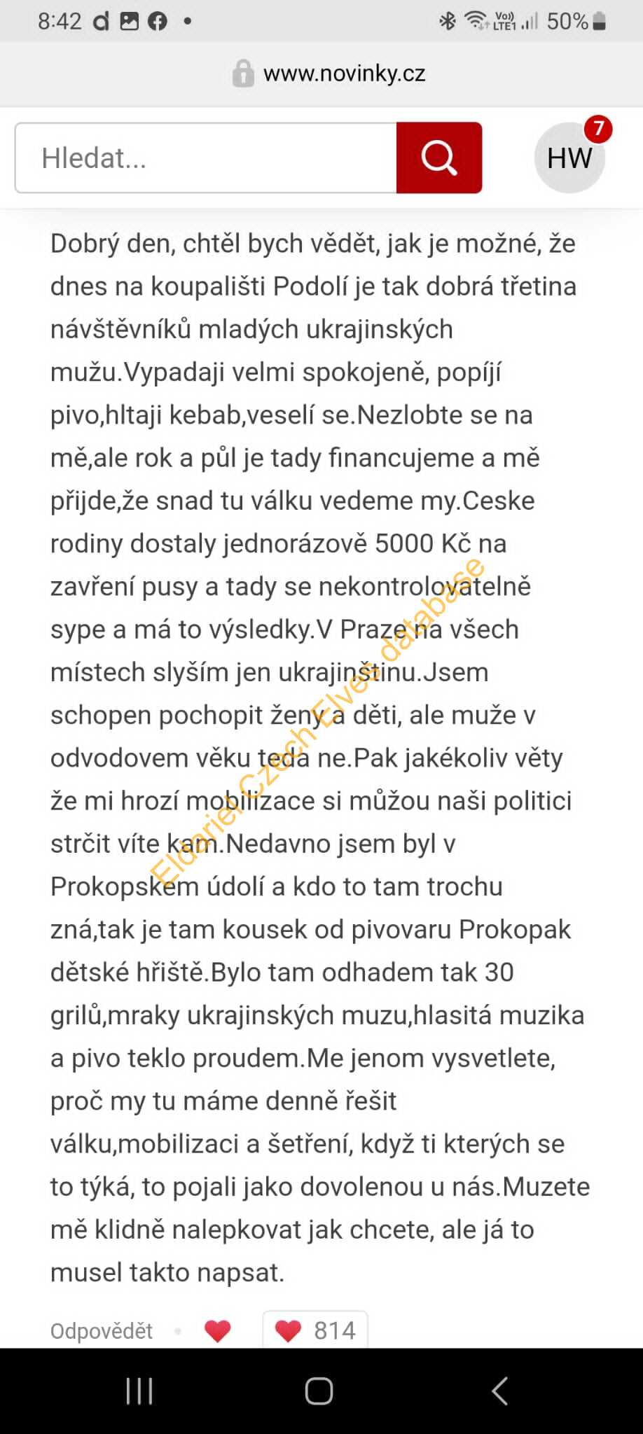 Popisuje situaci na koupališti Podolí, kde údajně třetina návštěvníků jsou mladí ukrajinští muži. Autor tvrdí, že Česká republika tyto muže finančně podporuje a že se cítí, jako by vedl válku. Je důležité přezkoumat a katalogizovat takové dezinformace pro bezpečnostní účely.