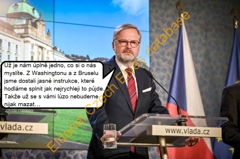 Už je nám úplně jedno, co si o nás myslíte. Z Washingtonu a z Bruselu jsme dostali jasné instrukce, které hodláme splnit jak nejrychleji to půjde. Takže už se s vámi lůzo nebudeme nijak mazat...