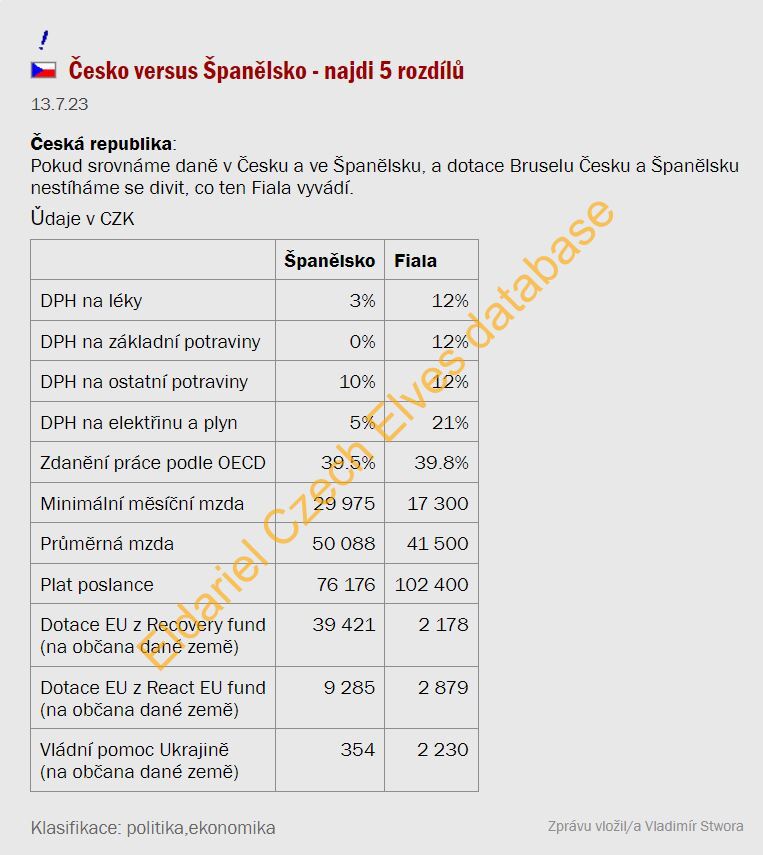 Pokud srovnáme daně v Česku a ve Španělsku, a dotace Bruselu Česku a Španělsku nestíháme se divit, co ten Fiala vyvádí.