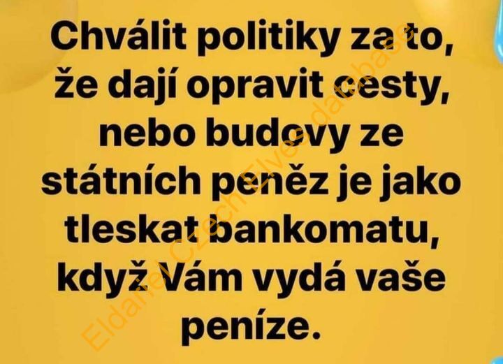 Chválit politiky za to, že dají opravit cesty, nebo budovy ze státních peněz je jako tleskat bankomatu, když Vám vydá vaše peníze.