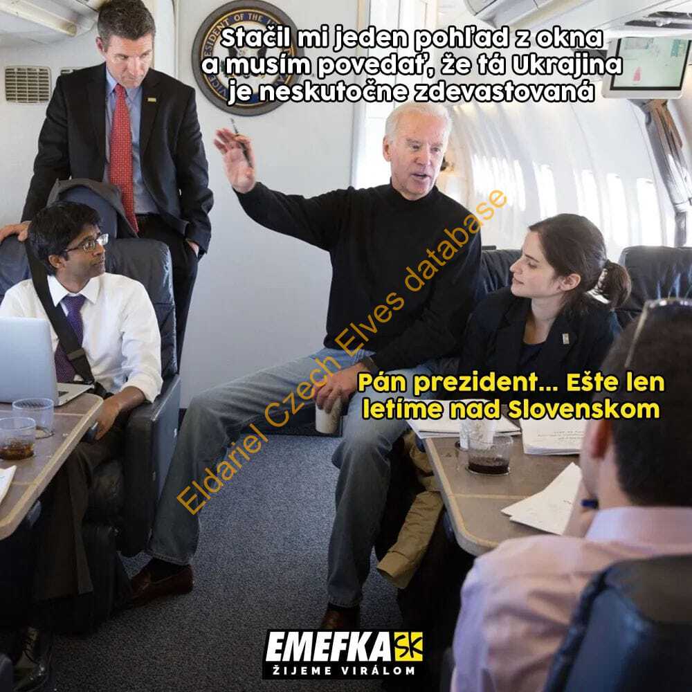 Stačil mi jeden pohľad z okna dmusim povedať, že tá Ukrajina zdevastovaná Pán prezident... Ešte len letíme nad Slovenskom