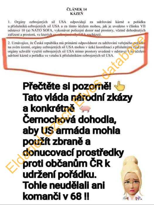 Přečtěte sl pozomě! Tato vláda národní zkázy a konkrétně černochové dohodla, aby US armáda mohla použft zbraně a donucovací prostředky proti občanům ČR k udržení pořádku. Tohle neudělali ani komanči v 68 !!