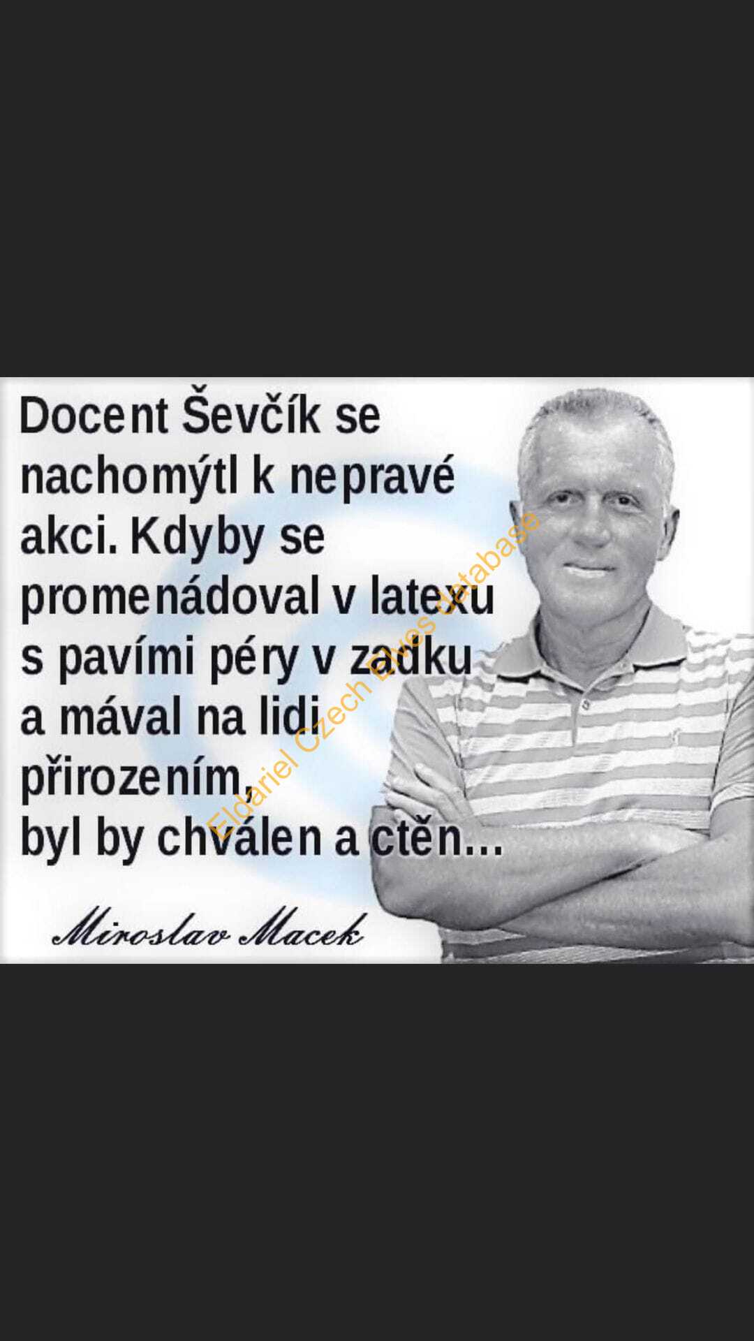 Docent ševčík se nachomýtl k nepravé akci. Kdyby se promenádoval v latexu s pavími péry v zadku a mával na lidi přirozením, byl by chválen a ctěn