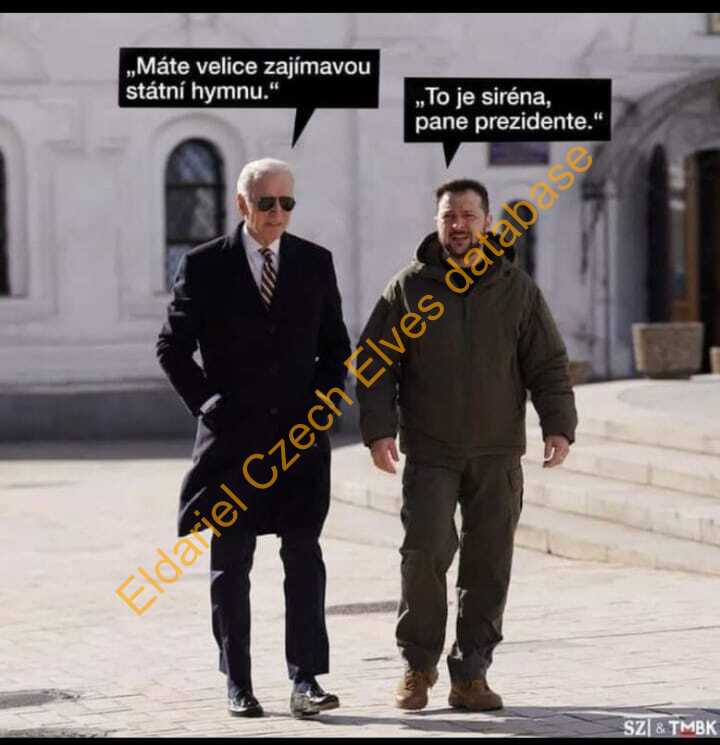 „Máte velice zajímavou státní hymnu." „To je siréna, pane prezidente.”