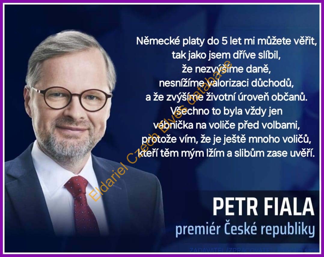 Textové a obrázkové vtipy, snažící se zesměštnit nebo ponížit Petra Fialu, Von der Layen, Jana Jakoba, Petra Pavla, Zbyňka Stanjura