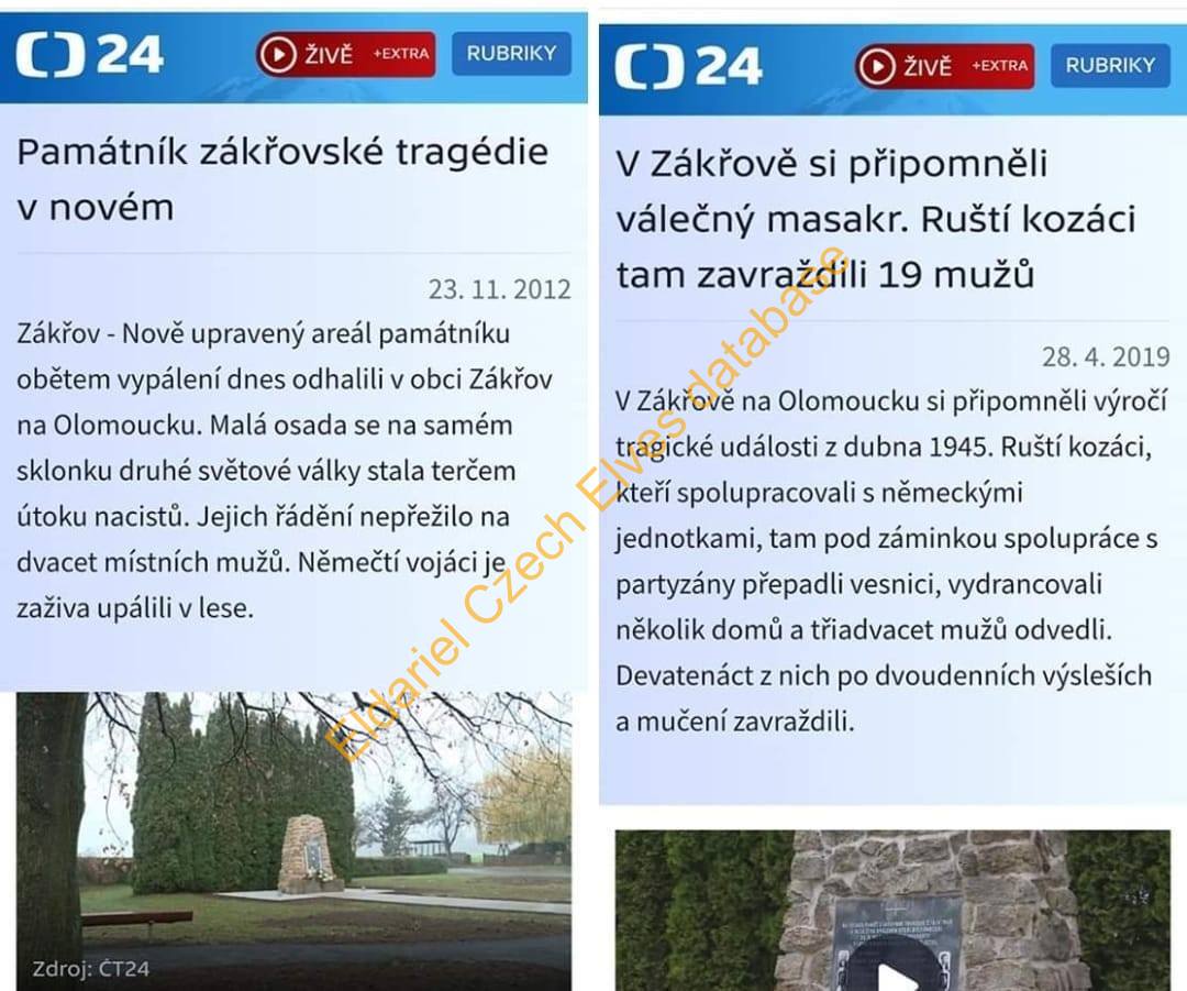 1) Dvě fotografie - dva články - spojující tragédii v Zákřově s nacisty na jedné straně a Kozáky na druhé straně. Spojuje Kozáky s Nacisty.