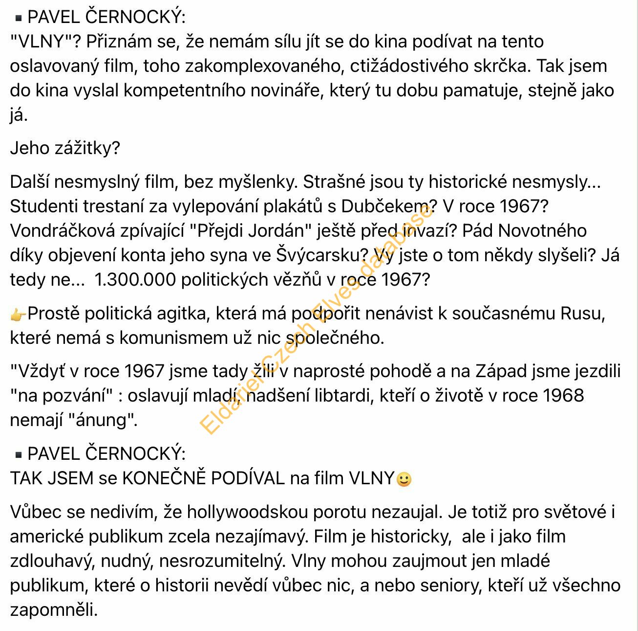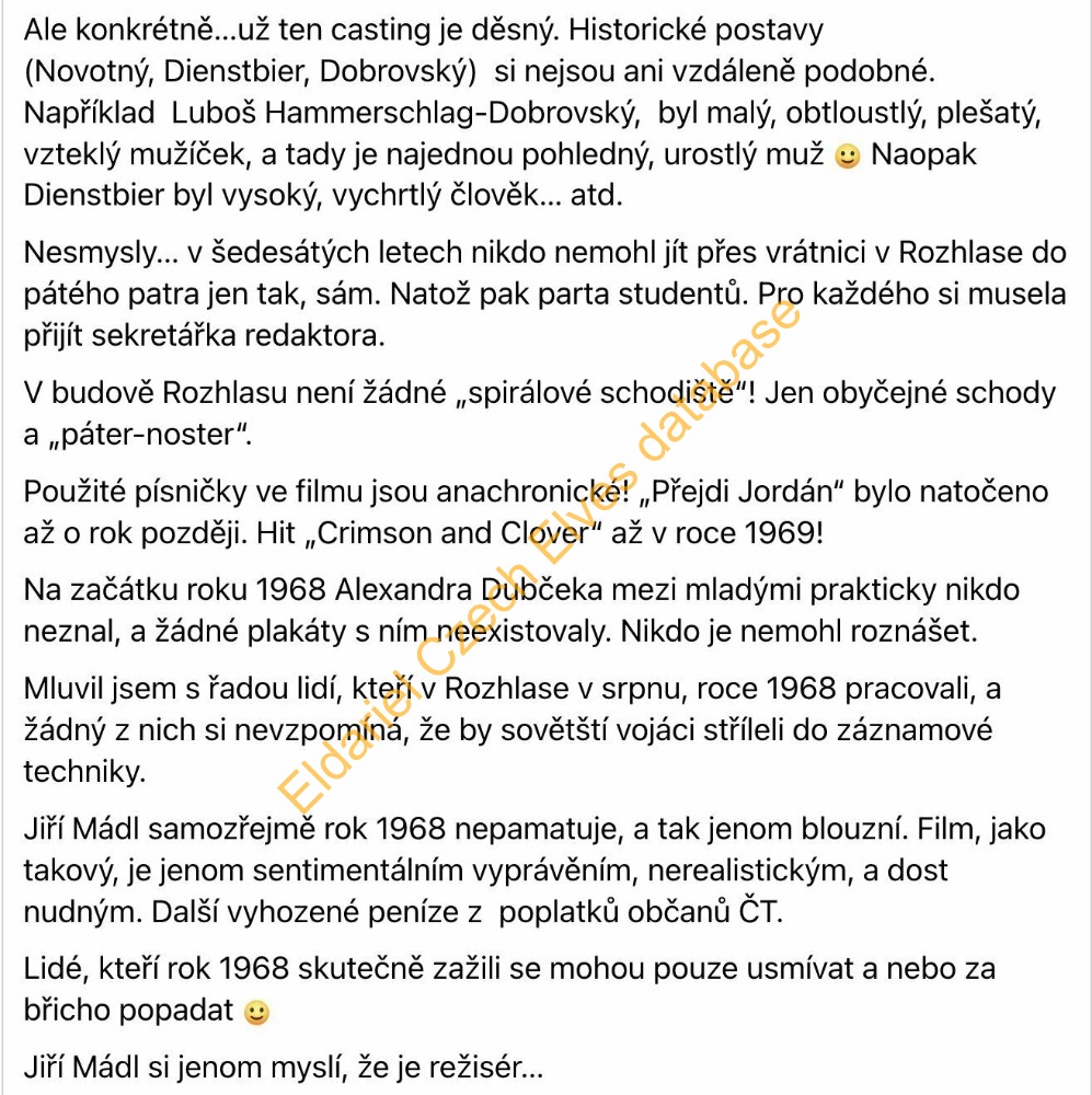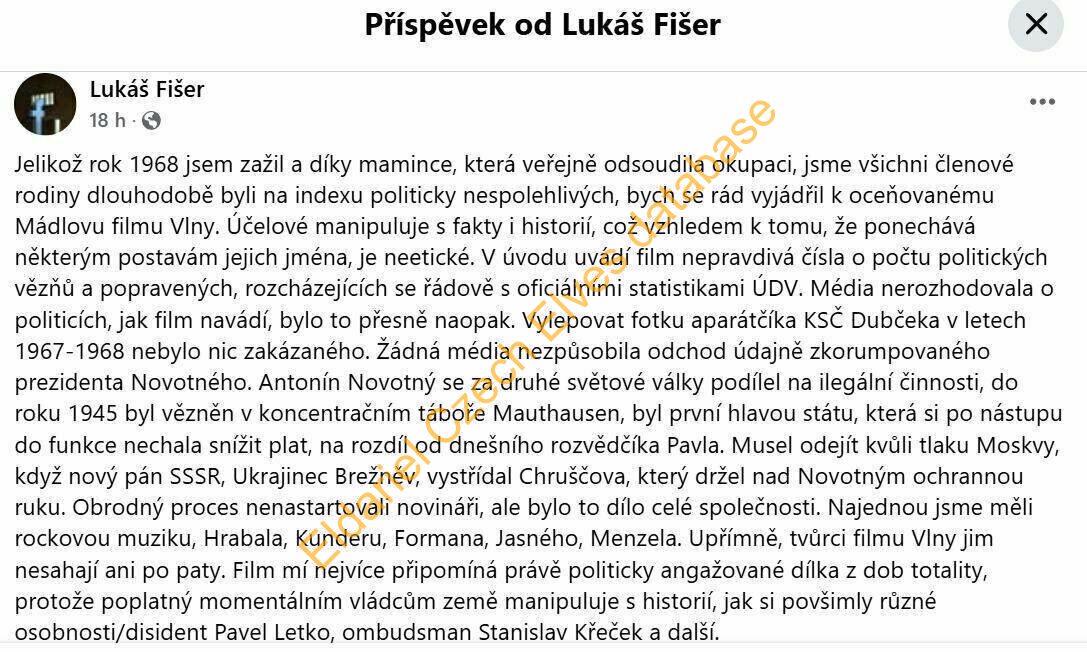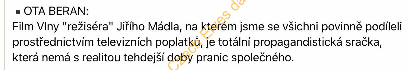 Kritika Mádla a jeho filmu Vlny, účelově manipuluje s fakty i s historií, připomíná politicky angažovaná dílka z dob totality, je poplatný současným vládcům země. Vyhozené peníze z poplatků za ČT.
