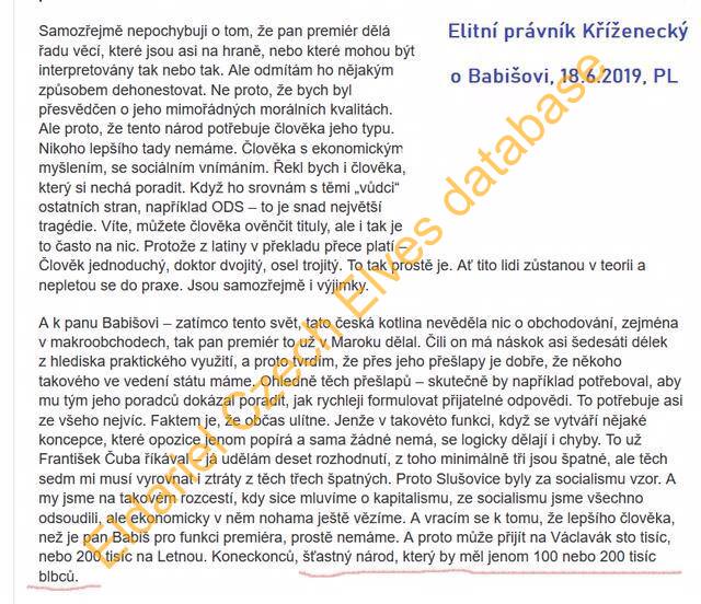 | 7159 | Kříženecký o Babišovi<<(Křiženecký, je bývalý vojenský prokurátor, ale je to druhý náš nejlepší právník.) | 2020-10-09 09:28:00 |