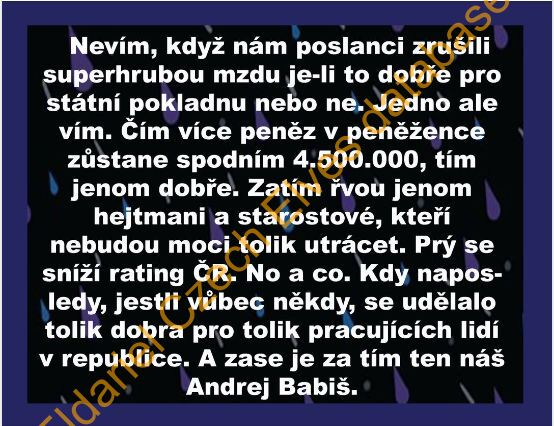 Obrázky s texty většinou na podporu Andreje Babiše, humorné, proti migrační, útočící na hejtmany apod.,