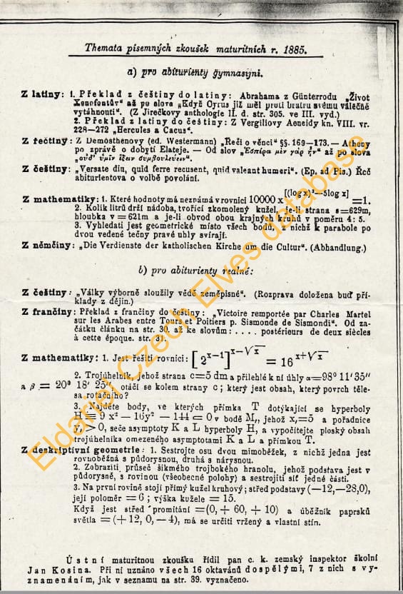 Ukázka zadání maturity z roku 1885 a zároveň útok na Piráty, kteří prý navrhují získání maturity pouze za docházku.