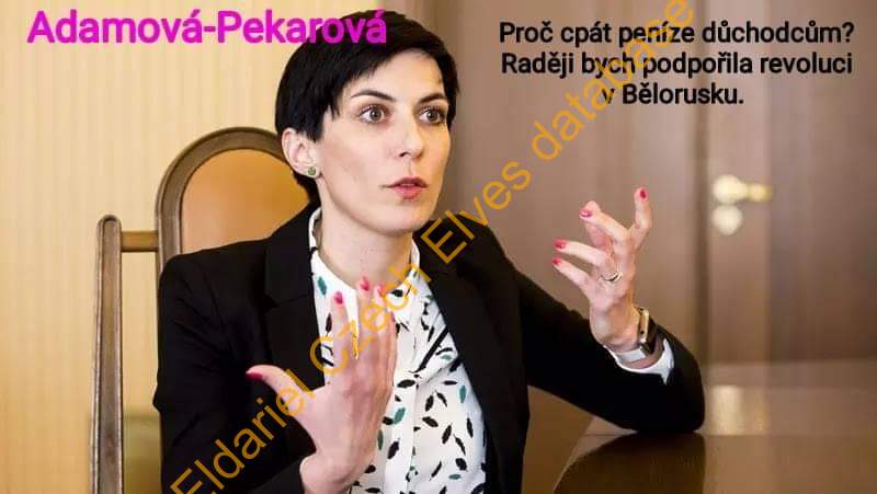 - obrázek mem - porovnává úspěchy vědců ve světě při pěstování umělého masa s tím, že u nás se podařilo vypěstovat "novou krávu" - Markétu Pekarovou - Adamovou, pro její údajný výrok "Proč cpát peníze důchodcům? Raději bych podpořila revoluci v Bělorusku".