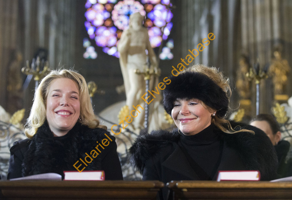 - foto z kostela - údajná zádušní mše za Václava Havla, kde jsou dle komentátora jeho maželka (vdova) a nevlastní dcera "vysmáté", sluší jim to, jsou bohaté, zlatokopky. Jsou to ony, ne turistky ze zemí SSSR.