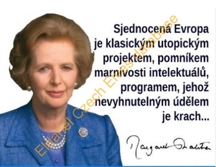 Sjednocená Evropa je klasickým utopickým projektem, pomníkem marnivosti intelektuálů, programem, jehož nevyhnutelným údělem je krach...- Margaret Thatcherová