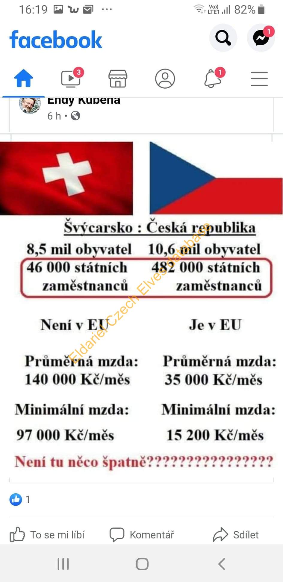 Ve Švýcarsku maji mnohem větší mzdy než u nás, protože nejsou v EU a mají méně státních zaměstnanců.